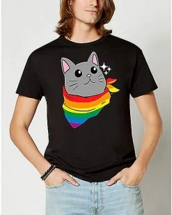 Hey cool cats, ready to celebrate Pride? This soft t shirt features a wide-eyed cat wearing a rainbow scarf. Wear this graphic tee to your next Pride event (and every other day, too).