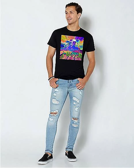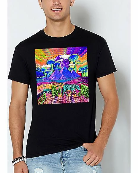 Looking to add some groovy new style to your wardrobe? Embrace your inner hippie when you rock this Pyramid Desert Trip T Shirt. This colorful top is sure to add a psychedelic element to your look!