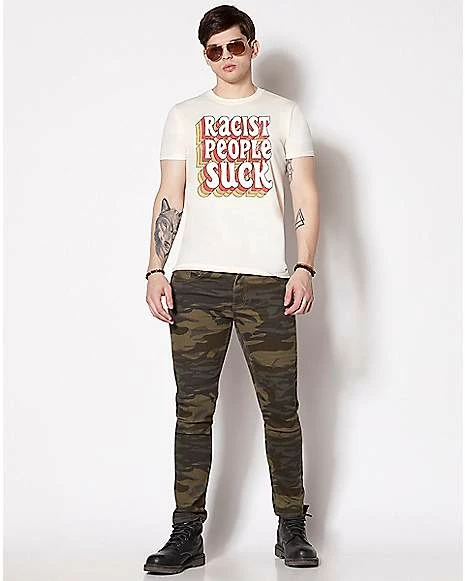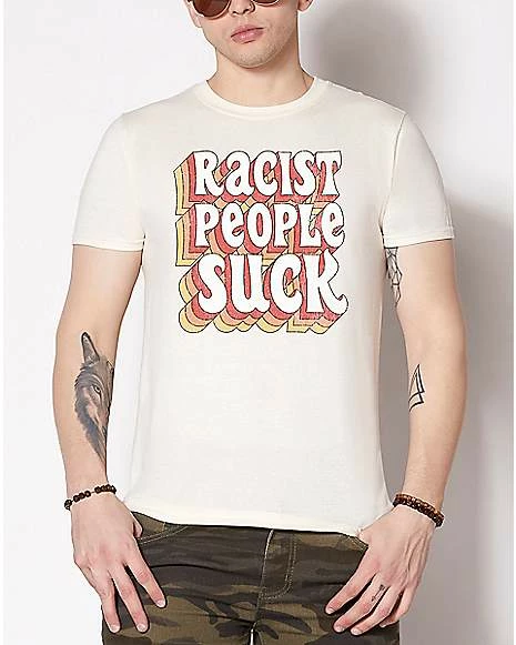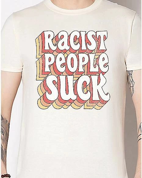 Racist people suck. Yes, that includes your 85-year-old grandpa who makes racist jokes. There is no excuse for racism, and he sucks. Time to change, grandpa. Rock this Racist People Suck T Shirt to stand up for positive change!