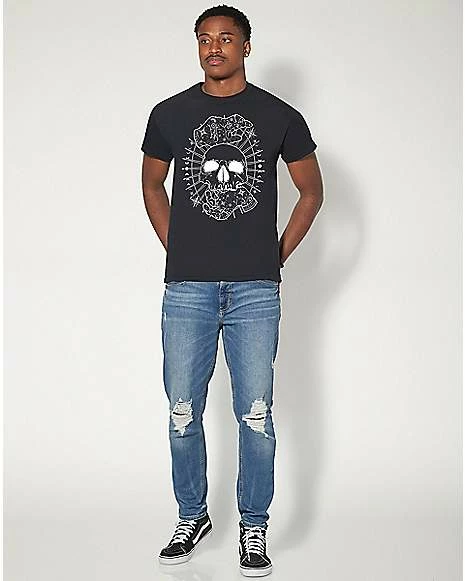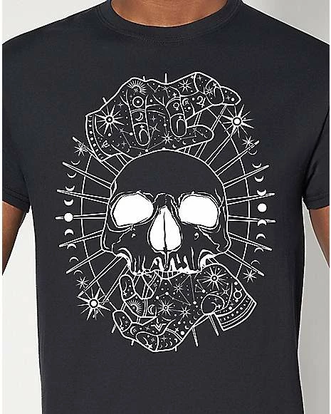 Put on some spooky style when you wear this black and white t shirt with artwork by von Kowen! Everyone will want to get a closer look at this powerful and intriguing imagery.