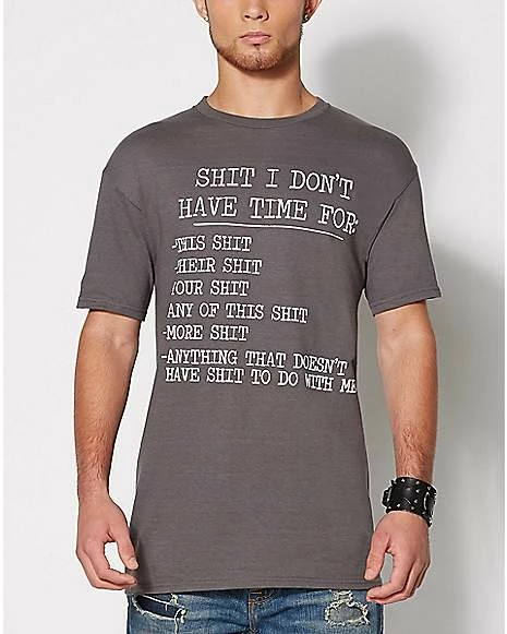 Let everyone know that you don’t have time for shit! This awesome graphic t shirt is the perfect addition to your casual wardrobe.