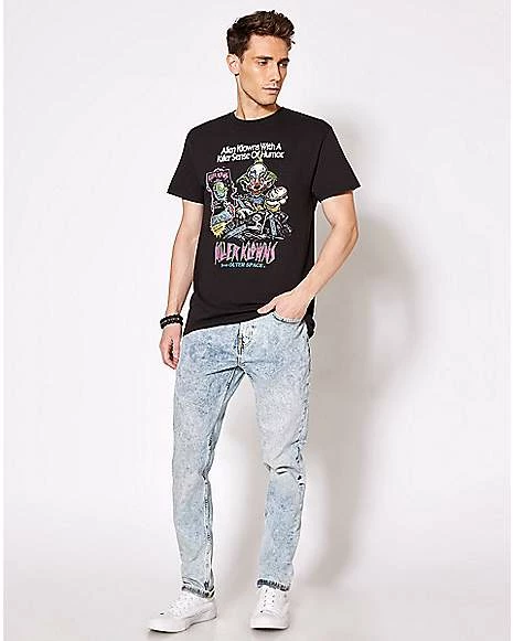 For a look that’s terrifyingly fun, this Shorty Killer Klowns from Outer Space T Shirt is a perfect choice. This killer tee, featuring one of the infamous Killer Klowns, Shorty, is an excellent addition to any horror fan’s wardrobe and is sure to please anyone who’s seen this cult classic movie.