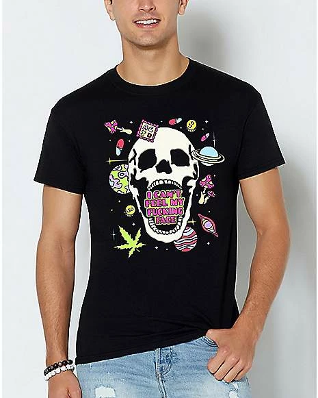 Show off your style with this skull tee designed to let everyone know that you have zero feeling in your face. You should probably get that checked out…