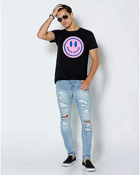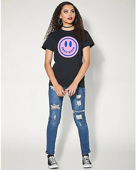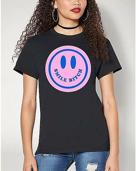 Show off your attitude when you rock this stylish Smile Bitch T Shirt. This hilarious tee will upgrade your look and show off your great sense of humor!