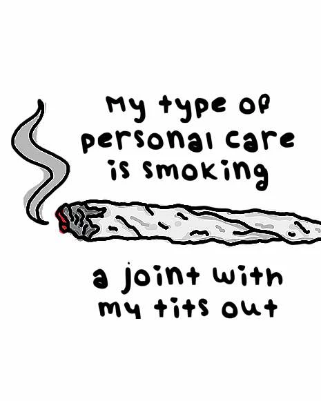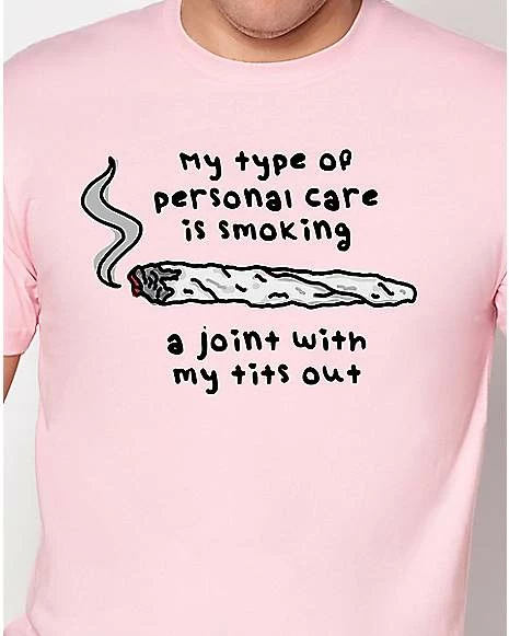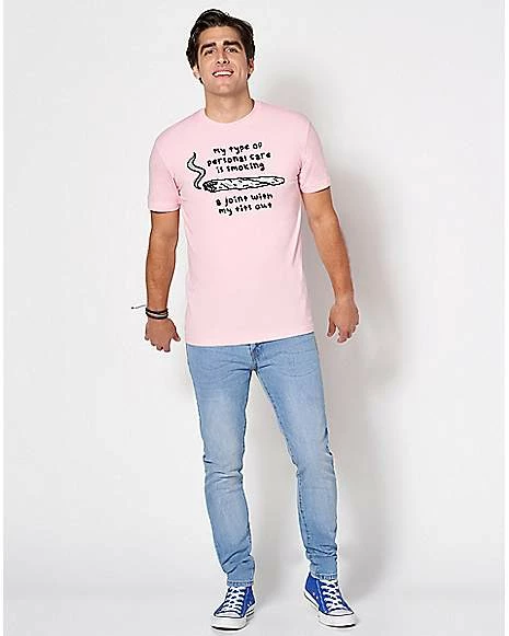 If you’re a happy stoner, put on this pink graphic tee and let everyone know! This funny t shirt is the perfect way to let everyone know what personal care means to you.