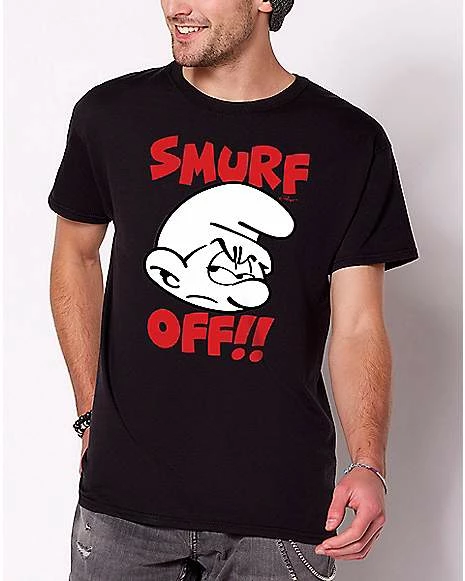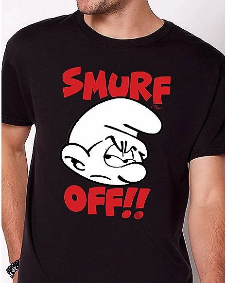 Let everyone know how much you love The Smurfs when you wear this officially licensed Smurf Off T Shirt. Crack up your friends and upgrade your wardrobe!