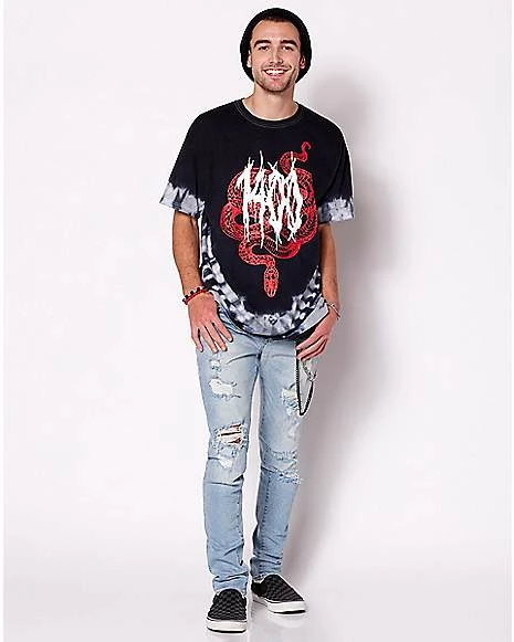 Show off your musical style in this offiical 1400 Trippie Redd t shirt! This fashionable black graphic tee features a red coiled snake and “1400” in white dripping letters for a dramatic effect.