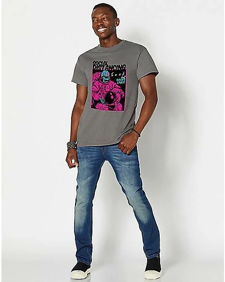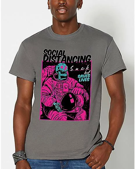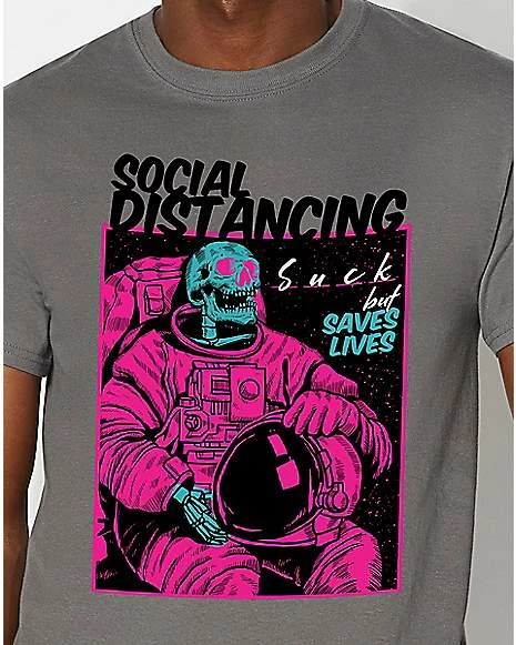 Social distancing sucks, but it saves lives! If you feel like you’re floating in outer space these days, you’re not alone. Wear this bold t shirt by El Chachos to look good while you spread an important message.