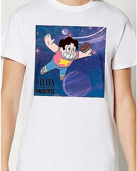 Join Steven and Cookie Cat in their journey to deliciousness with this Officially Licensed Steven Universe t-shirt. Sporting this shirt there will be no question on who the next Crystal Gem is.