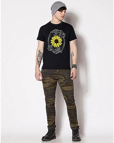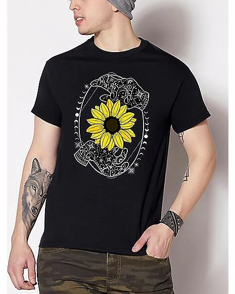 Show your love of nature and art with this sunflower t shirt with artwork by von Kowen! This stylish graphic tee will look amazing no matter what you pair it with and is the perfect bold addition to your wardrobe.