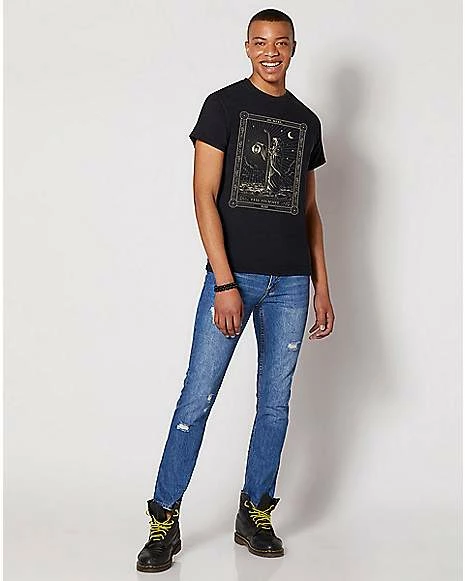 Start your next journey when you slip into this The Hermit Tarot T Shirt! This tarot-inspired tee, which features one of the Major Arcana, the Hermit, is an awesome choice for anyone looking to the cards for some wardrobe inspiration.
