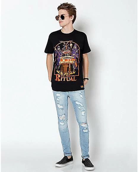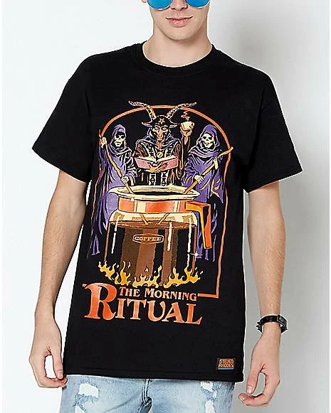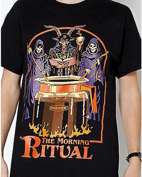 We all have a morning ritual, right? Some are just a little bit darker than others. Rock this Steven Rhodes t shirt and you’ll be bringin’ the dark humor everywhere you go.