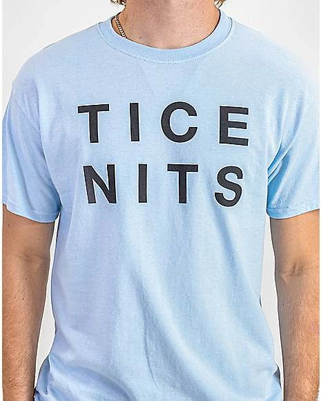 Made ya look. This light blue “tice nits” Danny Duncan t shirt is soft, eye-catching, and, most importantly, hilarious.