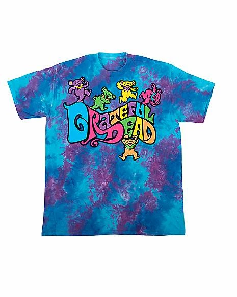 It’s time to get groovy. Show love for the ultimate jam band when you wear this officially licensed Grateful Dead T Shirt. This psychedelic tee has a tie dye design and features images of the band’s iconic dancing bear logos. Put this top on and get ready to rock!