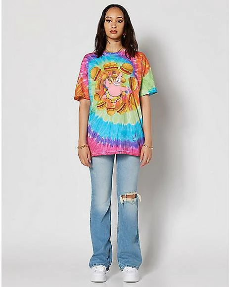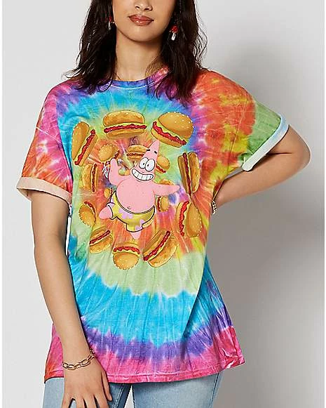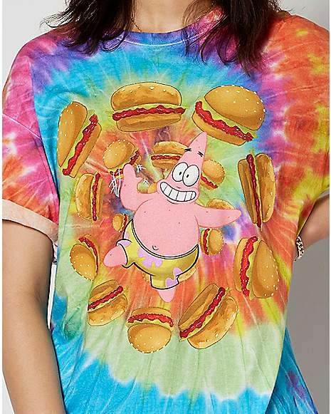 Celebrate one of the greatest cartoons of all time when you wear this officially licensed Patrick Star T Shirt. You’ll love this tie dye top almost as much as Patrick loves Krabby Patties!