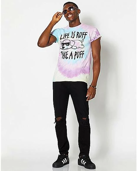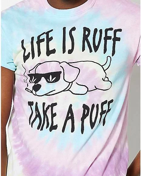 Make your life a little bit easier and more stylish and comfy in this tie dye Life Is Ruff Take a Puff tee! Truer words have never been spoken.