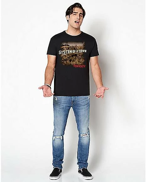 Love System of a Down? Add some headbangin’ style to your wardrobe when you get this officially licensed Toxicity T Shirt. Represent the band’s legendary album and bring your style to the next level!