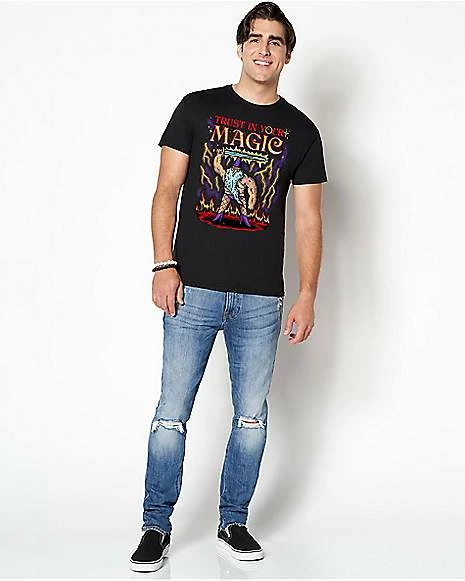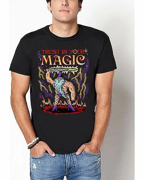 Add a fresh new look to your casual outfit by adding this Trust in Magic T Shirt to your casual wardrobe. This awesome tee from Wizard of Barge is sure to have you looking and feeling magical!