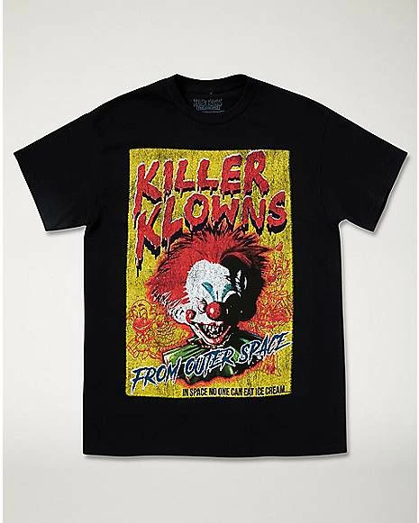 In space no one can eat ice cream… Party with everyone’s favorite Killer Klowns in our officially licensedΒ Vintage Killer Klowns from Outer Space! This vintage tee’s retro style is the perfect bit of nostalgia for any die-hard fan of this iconic ’80s horror classic!Β