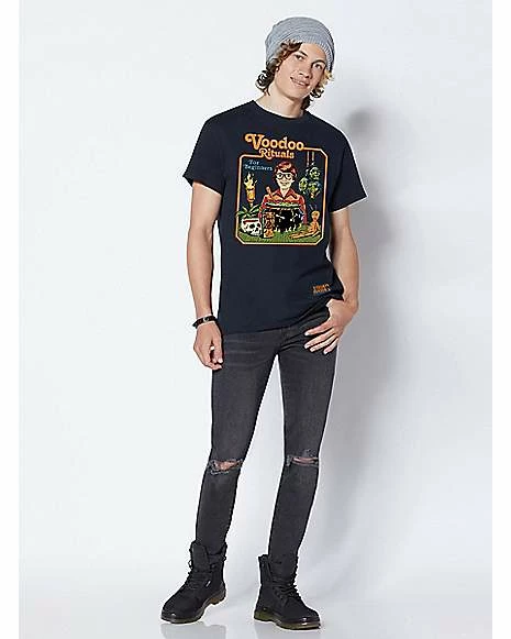 Welcome to Voodoo 101: The best way for beginners to learn ancient rituals! Show off your dark side when you rock this officially licensed Steven Rhodes tee. Add it to your wardrobe and level-up your style!