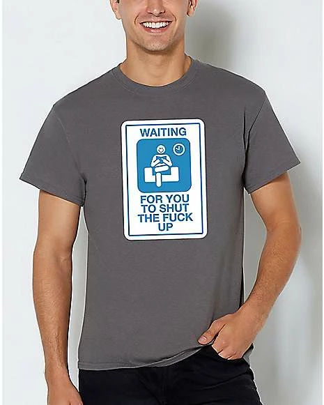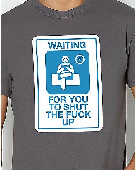 Looking for a shirt that says exactly what you’re thinking? This hilarious tee features the words “Waiting for you to shut the fuck up” printed on it. Get your point across with style!