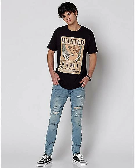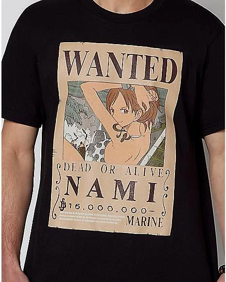 Show off your fandom with this official Wanted Nami t shirt! It’ll look stylish with any outfit and is perfect for One Piece fans who can’t get enough of this navigator of the Straw Hat Pirates. This graphic tee features a Wanted Dead or Alive poster and an image of Nami.ย