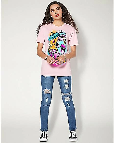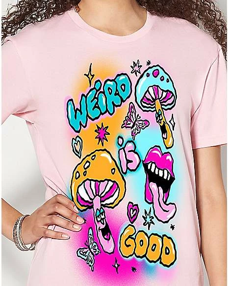 Wear your weirdness with pride with this fun pink graphic tee! This colorful airbrushed t shirt is just what your daily wardrobe needs to show that normal is overrated.