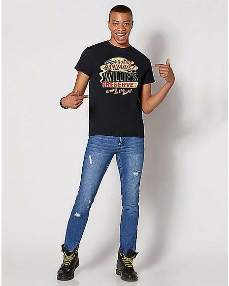 Represent a true legend and embrace your stoner side when you rock this officially licensed Willie Nelson T Shirt. This stylish tee features an incredible design that’s inspired by Willie’s cannabis reserve. Add it to your wardrobe and elevate your look!