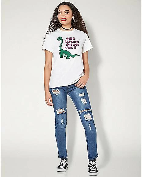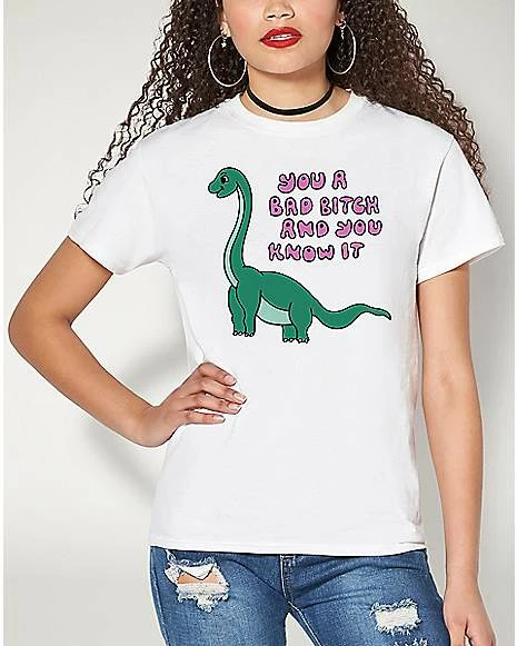 Make sure no one ever forgets how much of a bad bitch they are when you rock this You a Bad Bitch T Shirt. This stylish tee features a cool dinosaur on the front and is the perfect reminder to everyone that they’re amazing just the way they are.ย