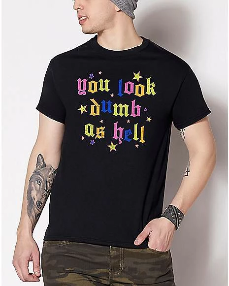 Tell everyone what you’re really thinking when you wear this funny graphic tee. This bold t shirt is the perfect way to state your mind and show off your sense of humor.