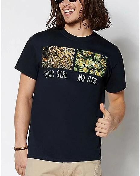 Let everyone know how you life your life when you wear this hilarious weed t shirt. It’s the perfect way to show off that you have a dank girl and a dank taste in the goods.
